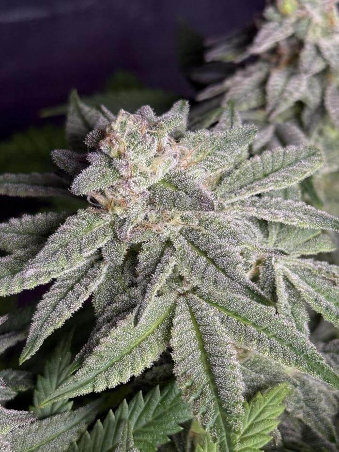 • Purple phenotype potential: late in flower, some phenotypes develop light purple colouration in the leaves and sugar leaves — a visual payoff that reflects the Zkittlez heritage